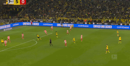 第89分钟,格罗斯右路传中,拜尔头球破门,多特6-0。